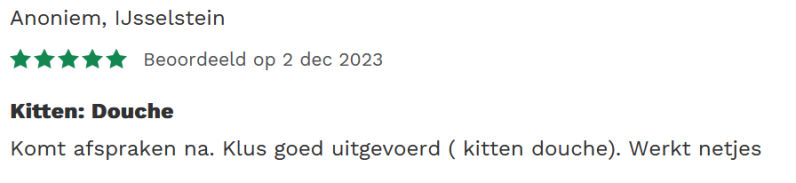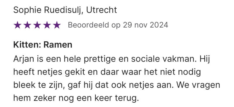 Wij zijn vinden het belangrijk om de mening van onze klant te horen. Daarom vragen wij na elke klus om een beoordeling, om de keuze van toekomstige klanten eenvoudiger te maken.